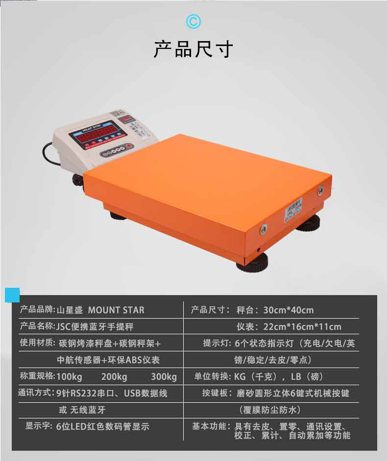 山星盛JSC藍牙手提秤-專為外出攜帶方便,占地面積小,應用廣。